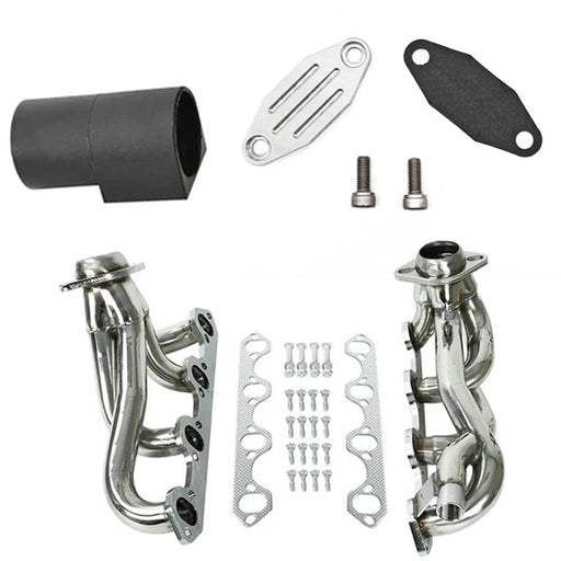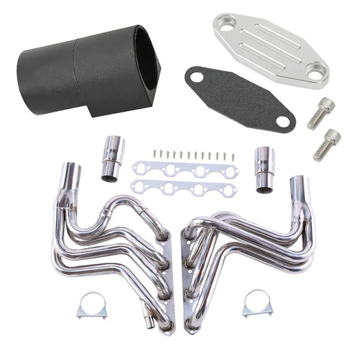 Seguler 1987-1996 5.8L Ford F150 F250 Bronco V8 Long Tube Header & Simulator Eliminator/Block Off Plate EGR valve delete Kit